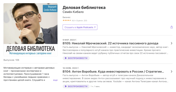 Больше 100 эпизодов с предпринимателями и авторами книг