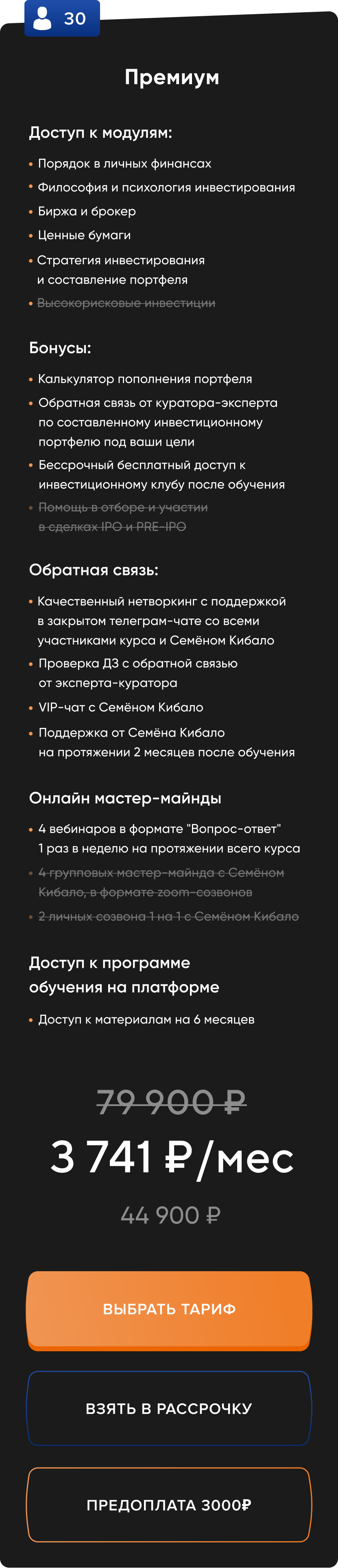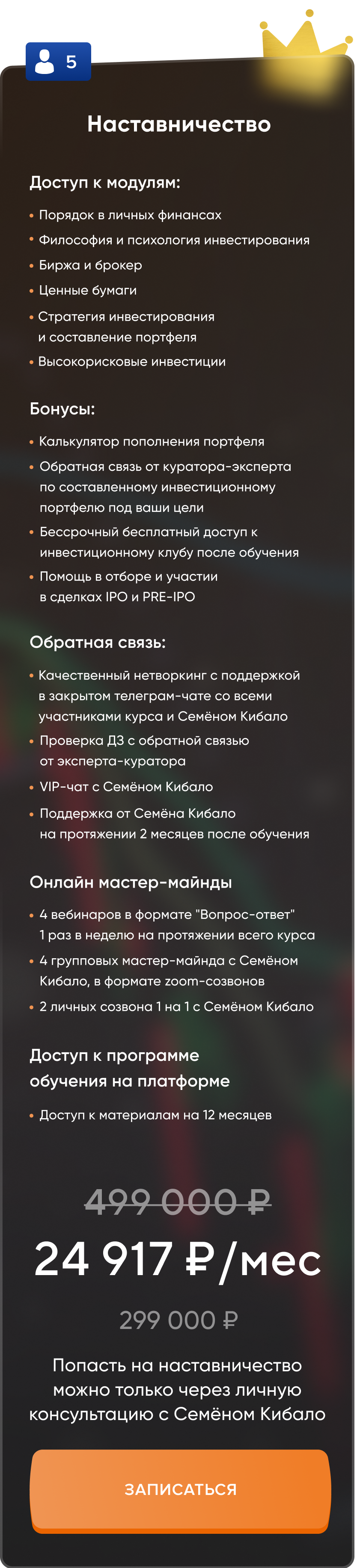 На обучение у вас будет уходить не больше 3-4 часов в неделю. В начале обучения придется тратить чуть больше часа на само инвестирование. Но под конец курса у вас будет все необходимое, чтобы тратить на инвестирование 1 час в месяц.