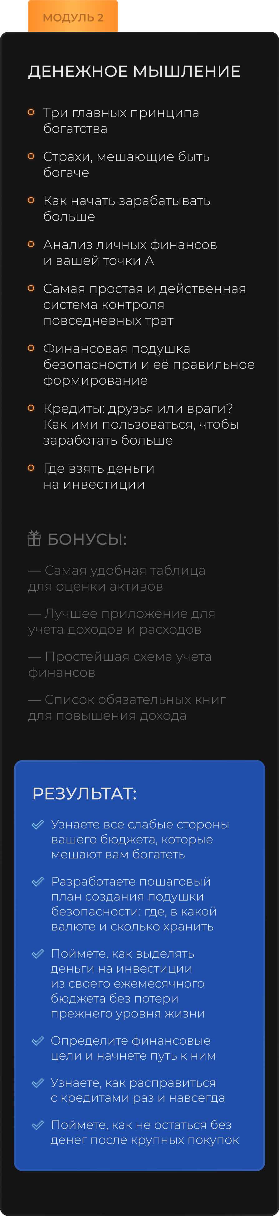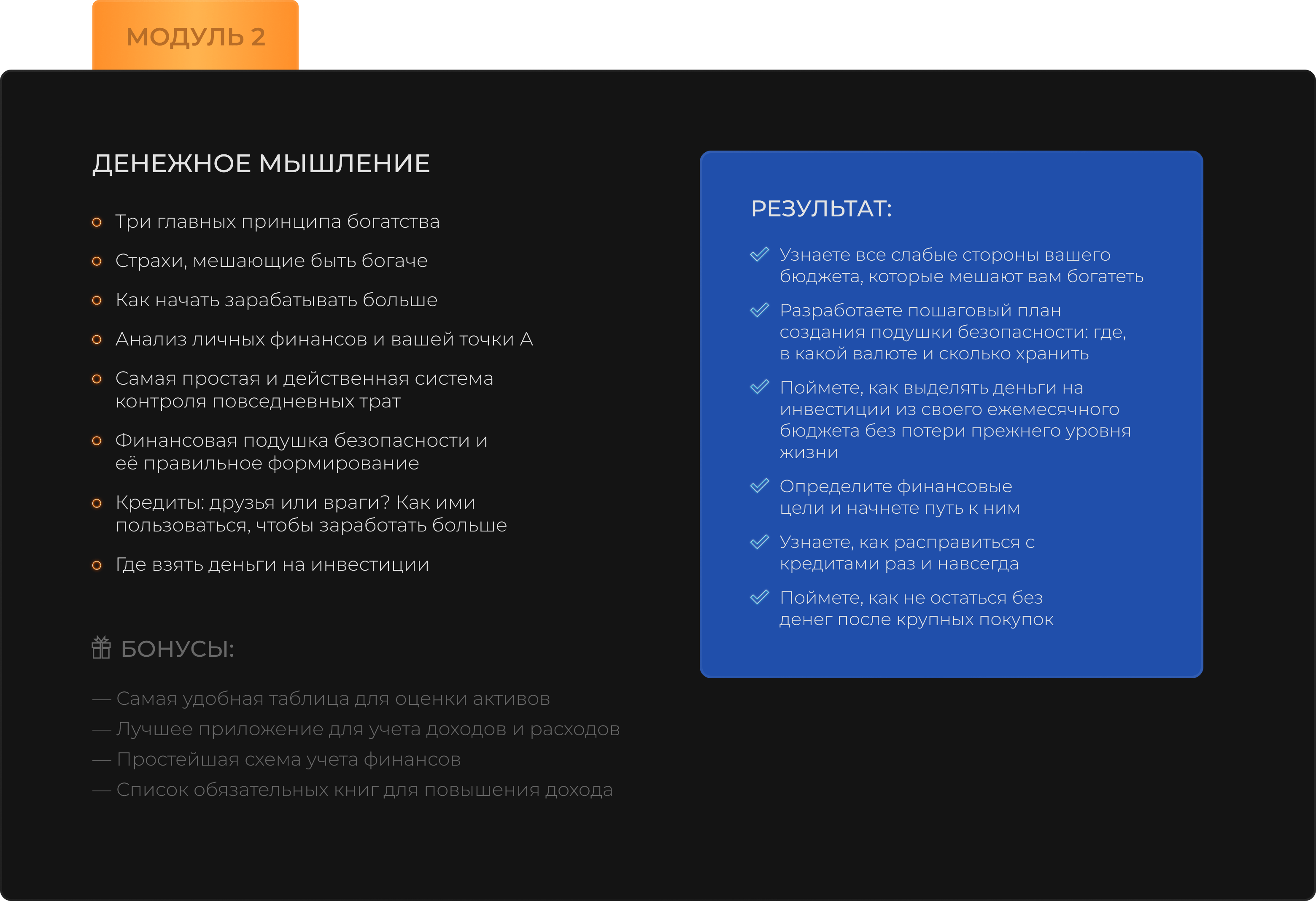 МОДУЛЬ 2: денежное мышление